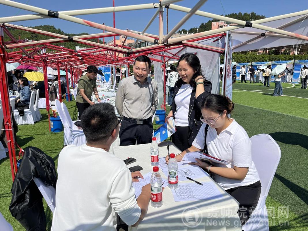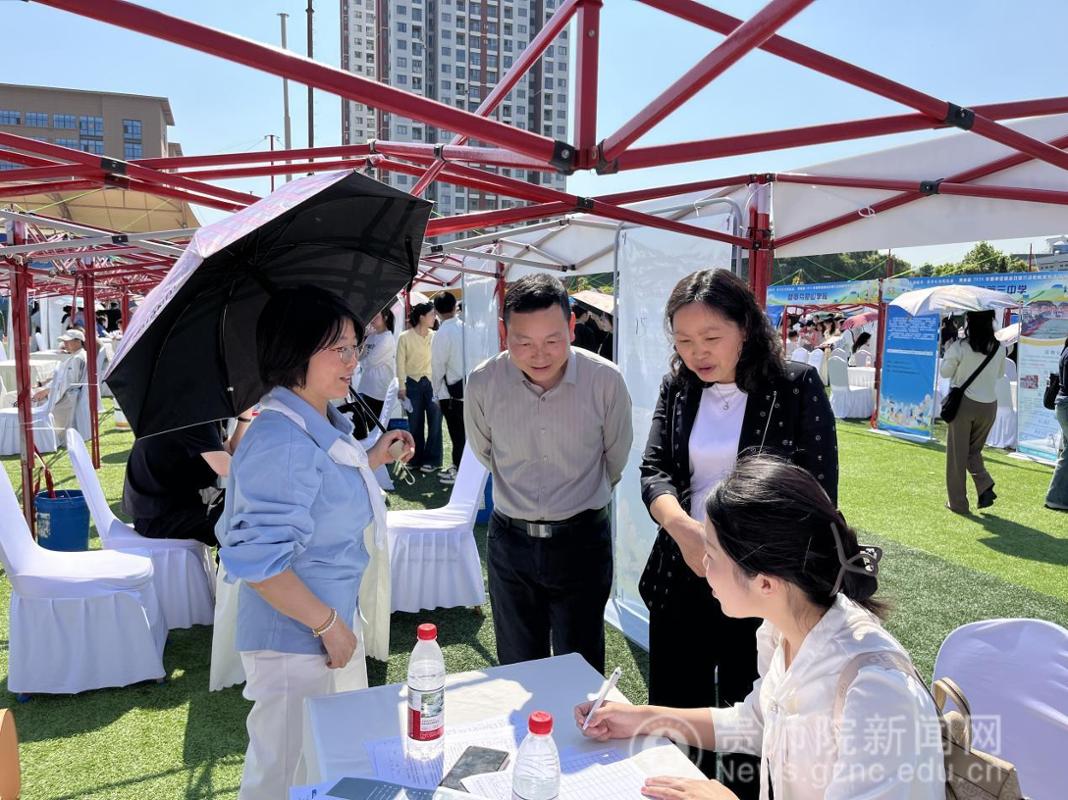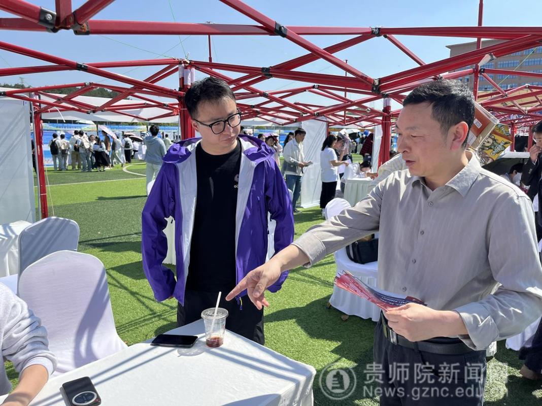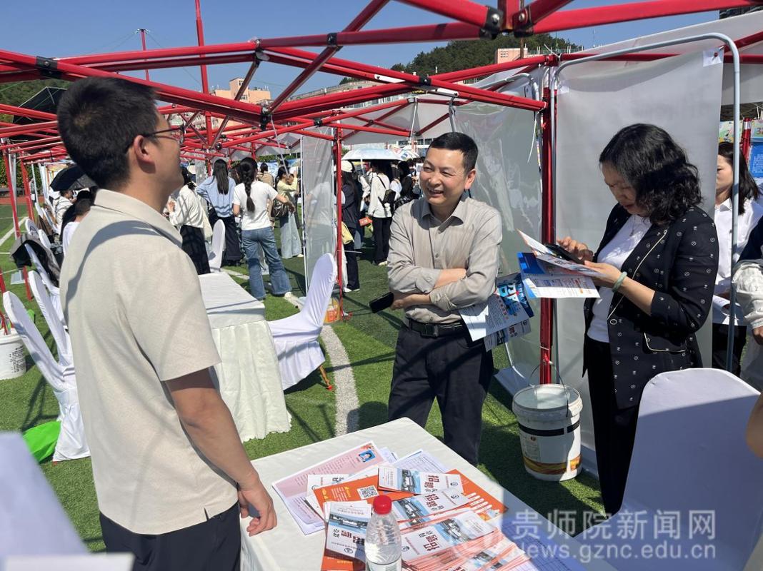 4月9日,在贵州省 2026 年春季促就业攻坚行动教育类专场双选会上,文学与传媒学院党委书记陈亦桥、院长杨波带队开展访企拓岗专项行动,深化校企合作,助力毕业生高质量就业。