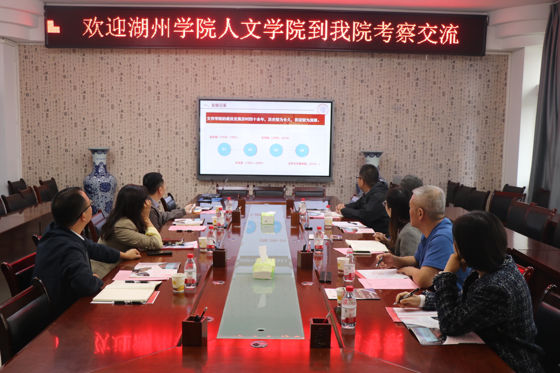 10月20日下午,湖州学院人文学院副院长张文、文学系副主任杨松明、外语系主任李梓、汉语言文学专业负责人颜军、学工办副主任葛玮一行到我院调研交流。我院党委书记陈亦桥、院长杨波及相关负责人参加了此次调研座谈会。