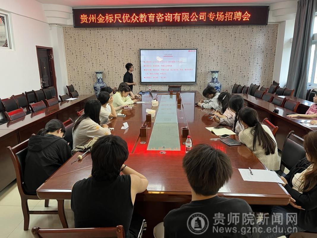 为深入落实春季促就业攻坚行动部署,拓宽毕业生就业渠道,精准对接教育行业人才需求,4月9日,文学与传媒学院开展访企拓岗专项行动,学院党委书记陈亦桥与贵州金标尺优众教育咨询有限公司开展深度对接交流,并为学院毕业生举办专场招聘会,切实为毕业生搭建供需对接平台,全力推进毕业生高质量充分就业。