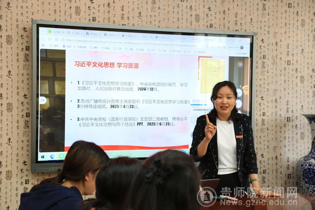 在交流研讨环节,八个小组围绕贵州“四大文化工程”与“贵州当下文化现象”两大主题开展深入探讨。学员们结合习近平文化思想中“两个结合”的要求,借助生成式人工智能快速凝练形成小组共识。各小组分别梳理了“四大文化工程”的标志性成果,聚焦“村字号”IP的破圈内核,探讨了阳明文化对青年价值观的塑造意义,分享了以“红飘带”为代表的红色文化弘扬经验。学员们将政治理论学习与贵州本土文化实践深度融合,深刻认识到青年学子在推动贵州文化繁荣发展中的使命担当。